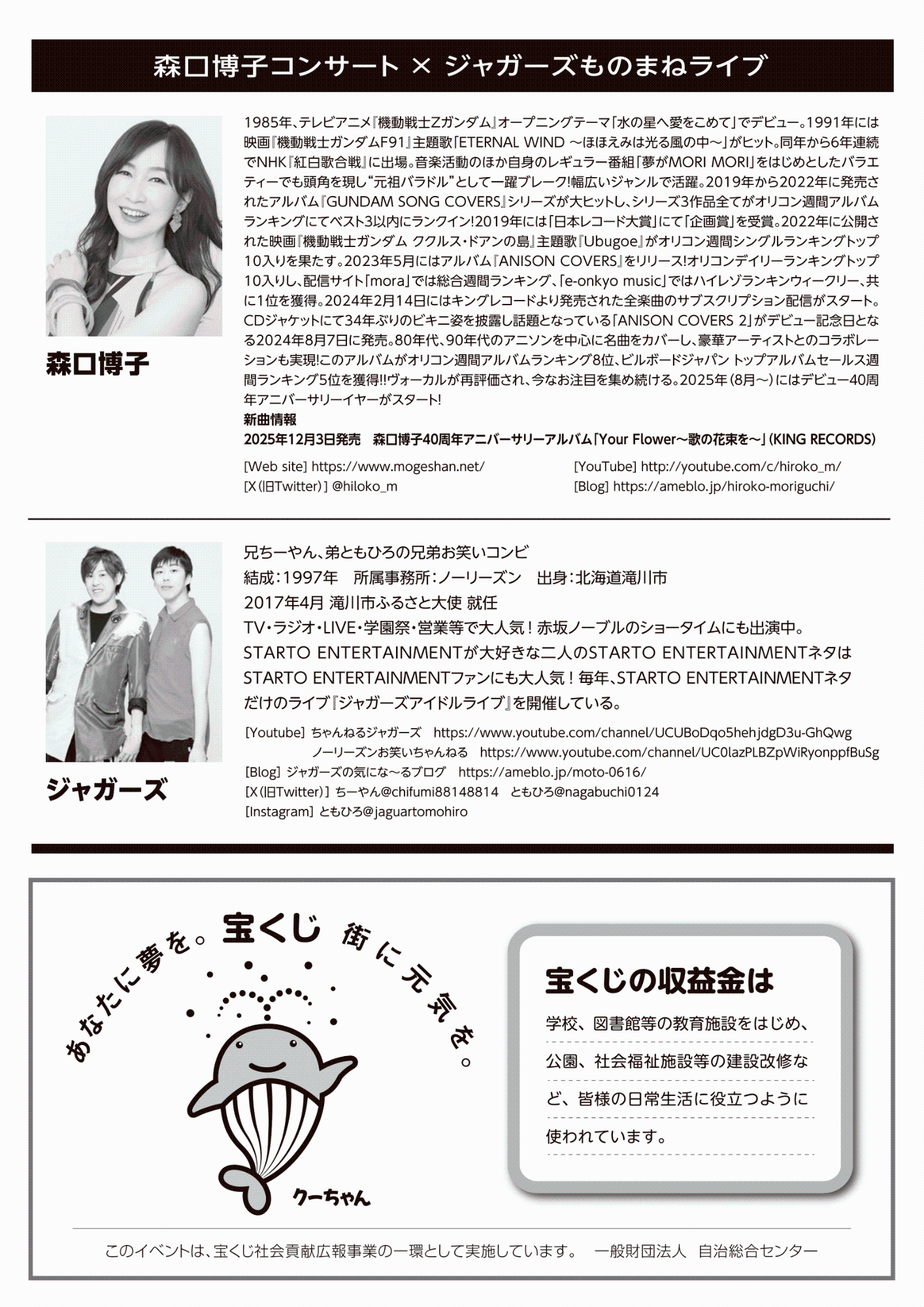 宝くじ文化公演「森口博子コンサート×ジャガーズものまねライブ」