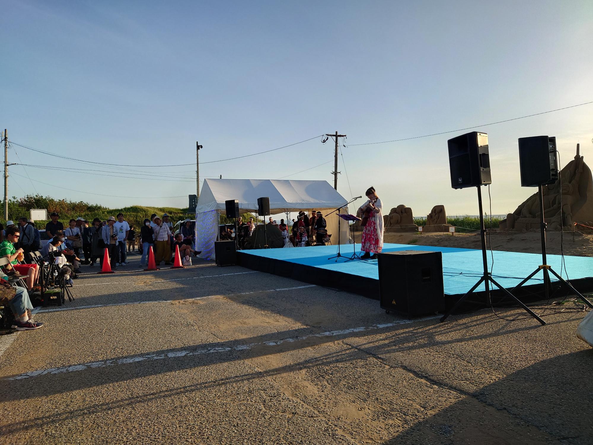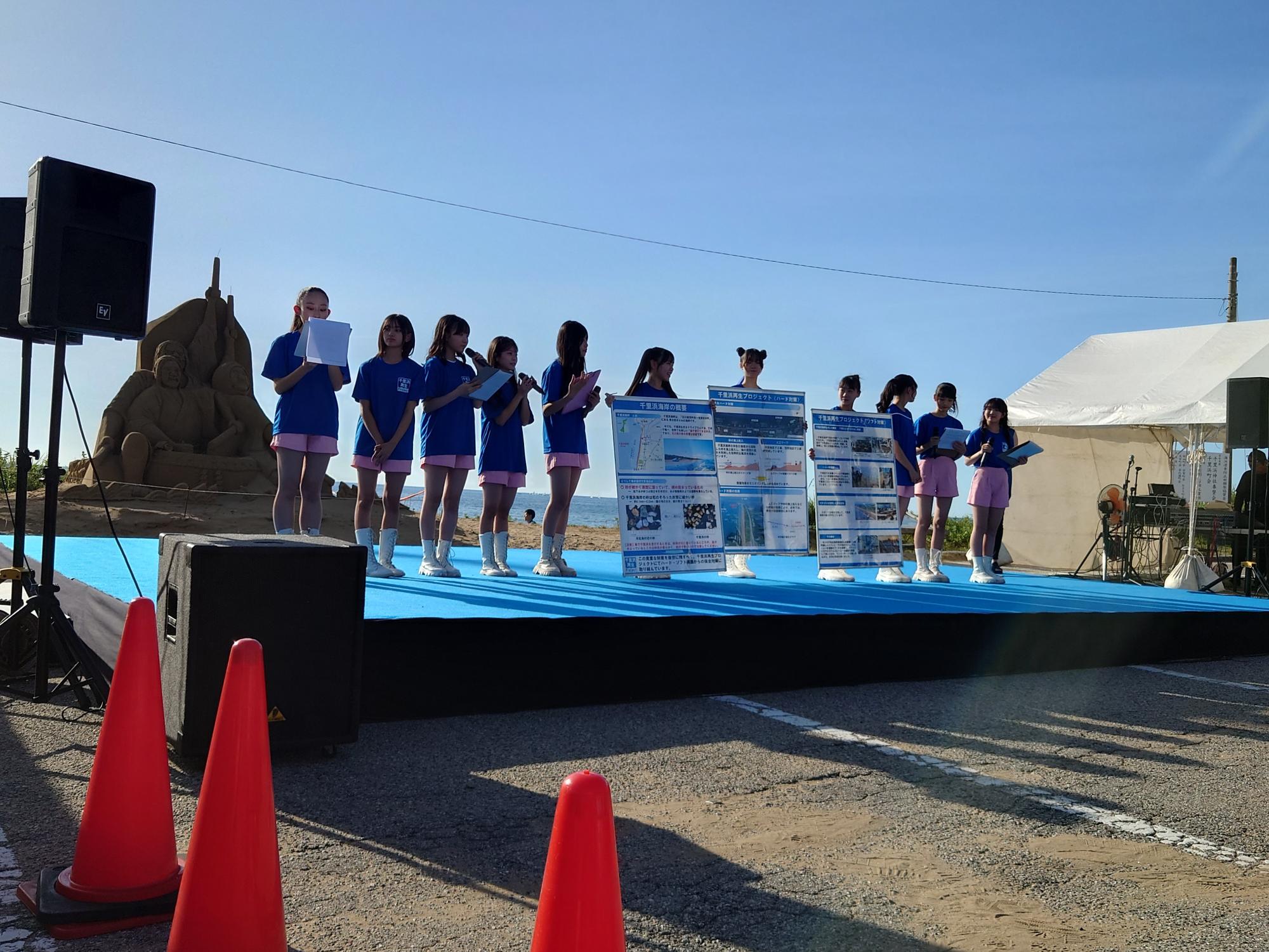 今回は、幅広い年代の方々に訪れていただくことができました。ステージイベントを楽しみながら、一人一砂運動などを通して、千里浜侵食の現状や問題の認知をしていただけたと思います。