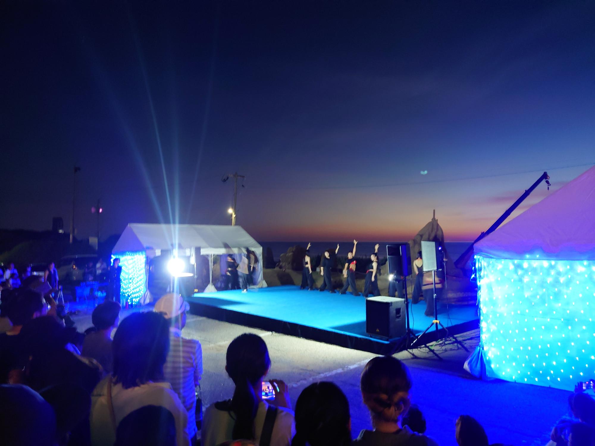 ステージイベントでは、千里浜の現状やプロジェクトの取組みについて紹介し、石川元気応援隊ジャンピンと一人一砂運動を行いました。その後は、ジャンピンによるステージイベント、千里浜のSumiの演奏やHAKODANCECLASS&ストナビダンススクールによるダンス、ファイアパフォーマー月讀のパフォーマンス、輪島和太鼓虎之助による演奏が披露されました!千里浜の祭りもあり、多くの方でにぎわいました!