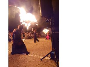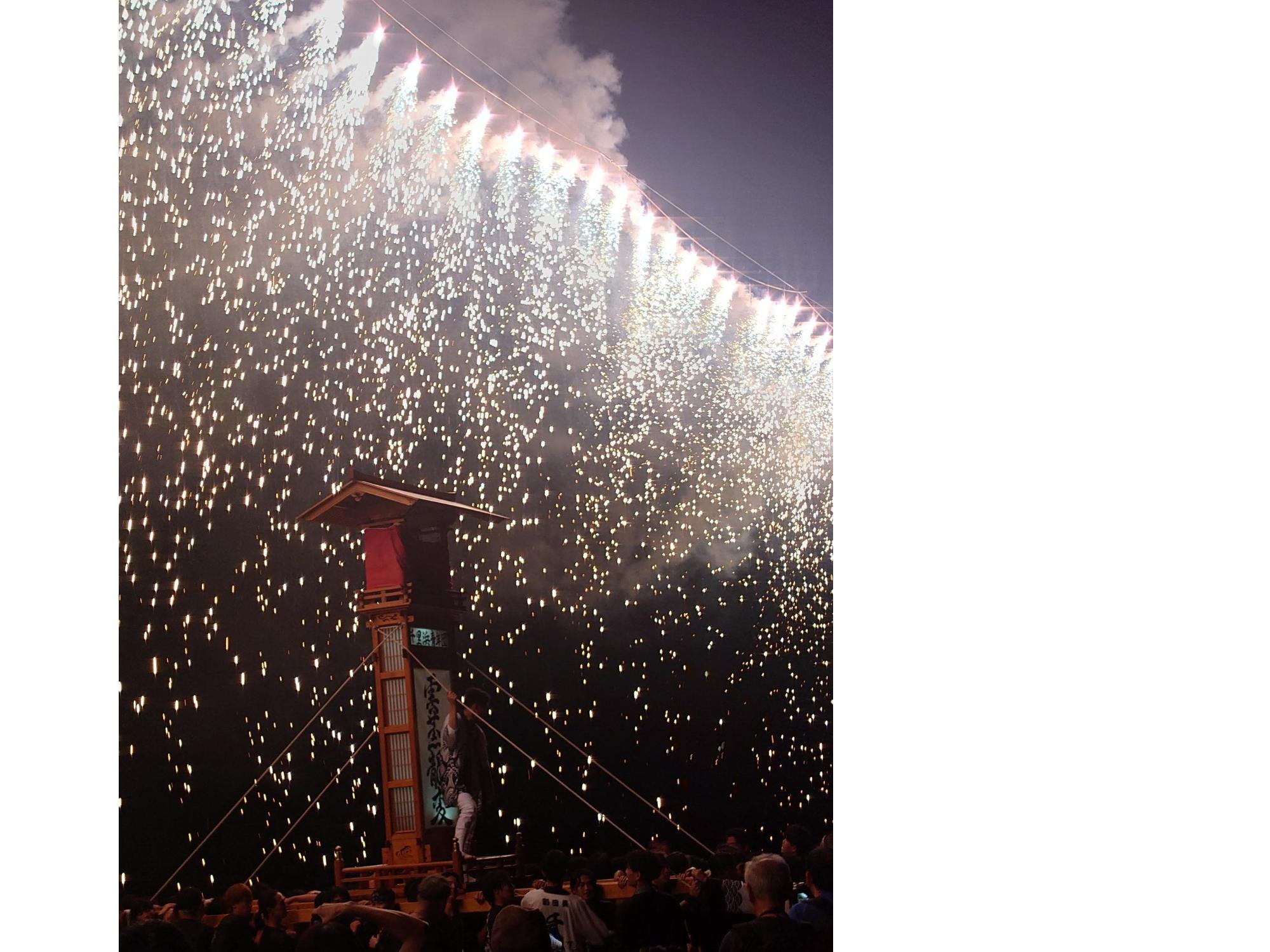 また、イベント終了後には「千里浜海岸侵食防止祈願祭」が行われました。祭りは波打ち際を神輿やキリコ、獅子舞が乱舞しました。最後はナイアガラ花火で締めくくられ、多くの方が集まり熱気と幻想的な雰囲気に包まれました。