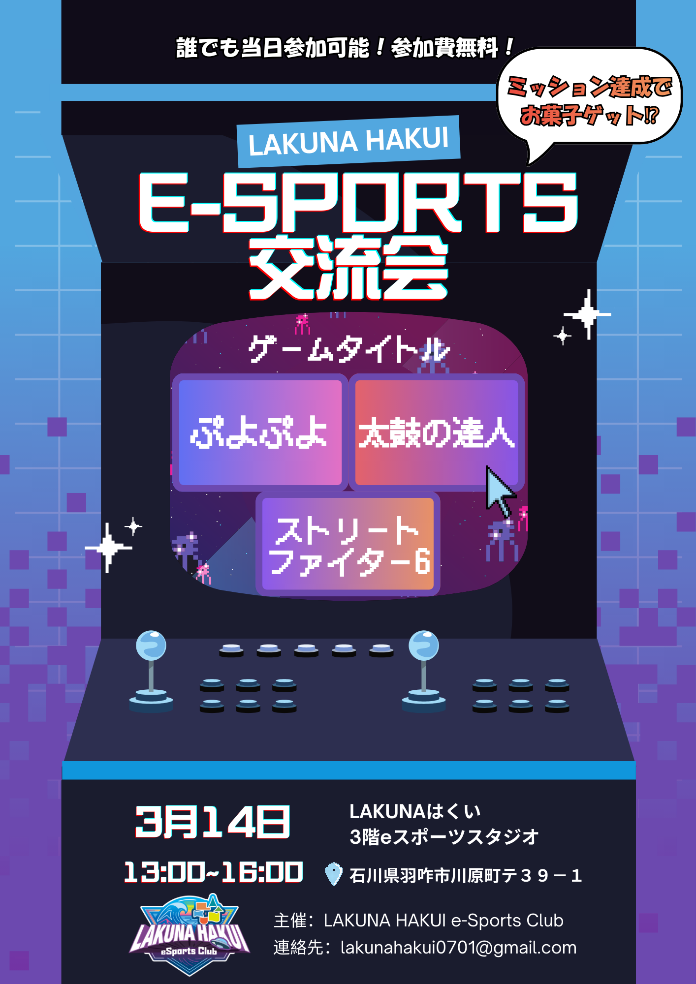 【場 所】 LAKUNAはくい 3F eスポーツスタジオ