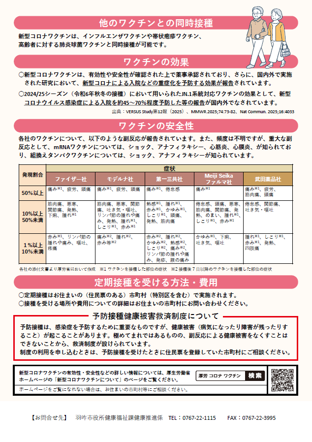 令和7年度新型コロナワクチン接種について(定期予防接種)