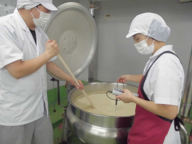 こげないように、ずっと混ぜ続けています。良い香りが漂ってきます。