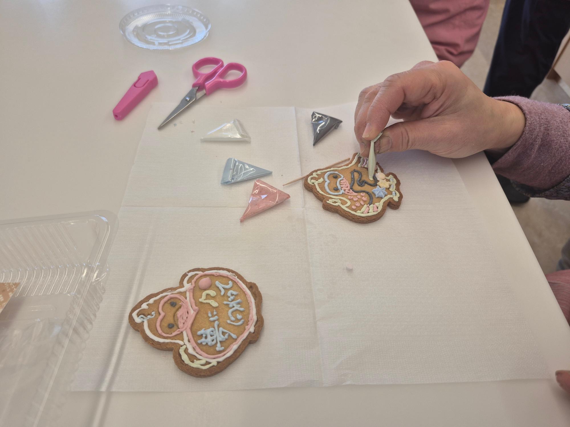 トキアイシングクッキー作り 。のとっきーのクッキーにクリームで絵を描きました。