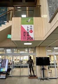 本州初のトキ放鳥、看板・垂れ幕を設置しました。